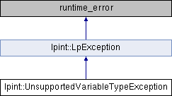 Public Member Functions inherited from lpint::LpException | |